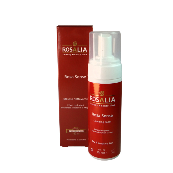 ROSALIA Rosa Scence Cleansing Face Foam For Dry & Sensitive 150ml فوم پاک کننده صورت مناسب پوست خشک و حساس مدل رزاسنس Rosa Sense رزالیا حجم 150 میلی لیتر پاک کننده عمقی پوست خشک و حساس حفظ رطوبت پوست کمک به کاهش التهابات پوستی مانند خارش سوزش و قرمزی بدون پارابن و بدون سولفات
